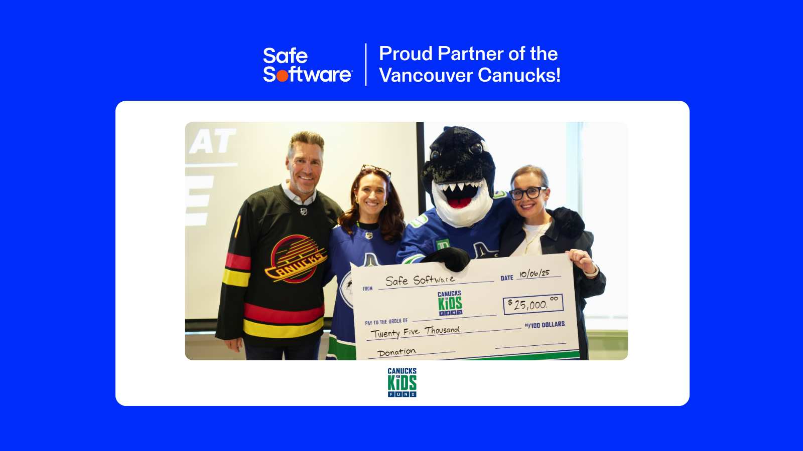 “We’re proud to partner with Safe Software, a local company that shares our commitment to innovation and community,” said Michael Doyle, President, Canucks Sports & Entertainment, Business Operations & President, Canucks for Kids Fund. “Their generous support of the Canucks for Kids Fund will help strengthen initiatives that create meaningful change for youth and families throughout British Columbia.”
